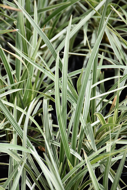 A tufted grass like perennial that features a clump of arching, green and white varigated leaves; a beautiful display of lovely lilac-purple flower spikes; it is best massed as a groundcover or in containers