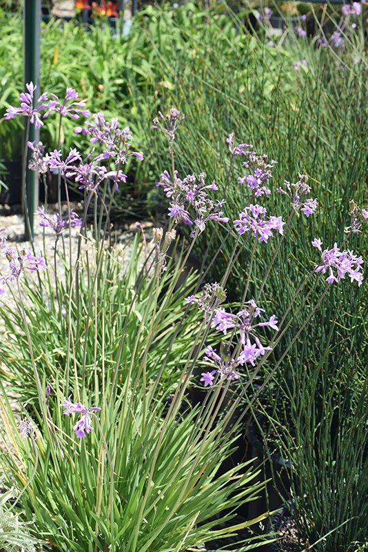 Society Garlic features showy spikes of fragrant lilac purple star-shaped flowers with pink overtones rising above the foliage from mid summer to early fall, which emerge from distinctive purple flower buds. The flowers are excellent for cutting. Its attractive fragrant grassy leaves remain green in color throughout the season.