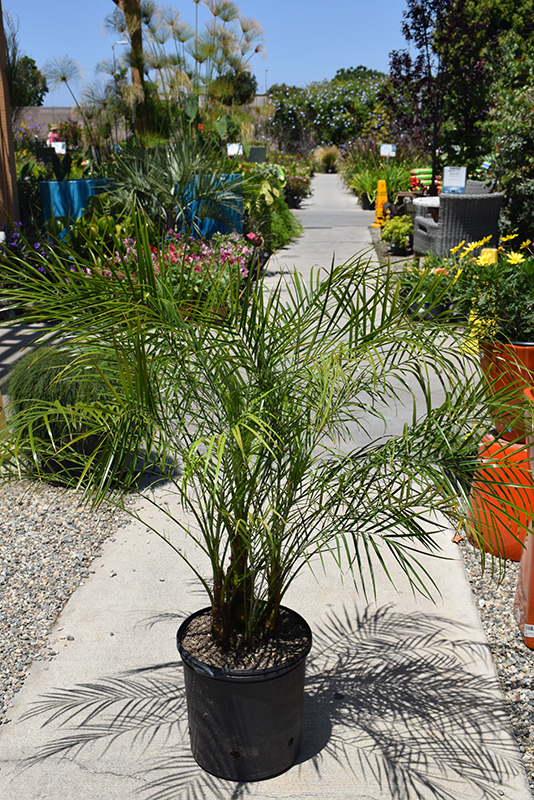 When grown indoors, Pygmy Date Palm can be expected to grow to be about 10 feet tall at maturity, with a spread of 10 feet. It grows at a slow rate, and under ideal conditions can be expected to live for approximately 60 years. This houseplant will do well in a location that gets either direct or indirect sunlight, although it will usually require a more brightly-lit environment than what artificial indoor lighting alone can provide. It does best in average to evenly moist soil, but will not tolerate standing water. The surface of the soil shouldn't be allowed to dry out completely, and so you should expect to water this plant once and possibly even twice each week. Be aware that your particular watering schedule may vary depending on its location in the room, the pot size, plant size and other conditions; if in doubt, ask one of our experts in the store for advice. It is not particular as to soil type or pH; an average potting soil should work just fine.