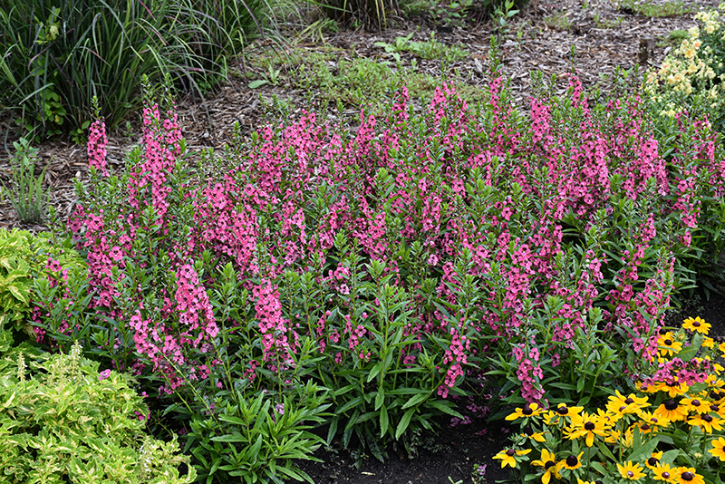 Angelface® Perfectly Pink Angelonia has masses of beautiful spikes of rose pea-like flowers with deep purple eyes rising above the foliage from late spring to early fall, which are most effective when planted in groupings. The flowers are excellent for cutting. Its small fragrant narrow leaves remain green in color throughout the year.