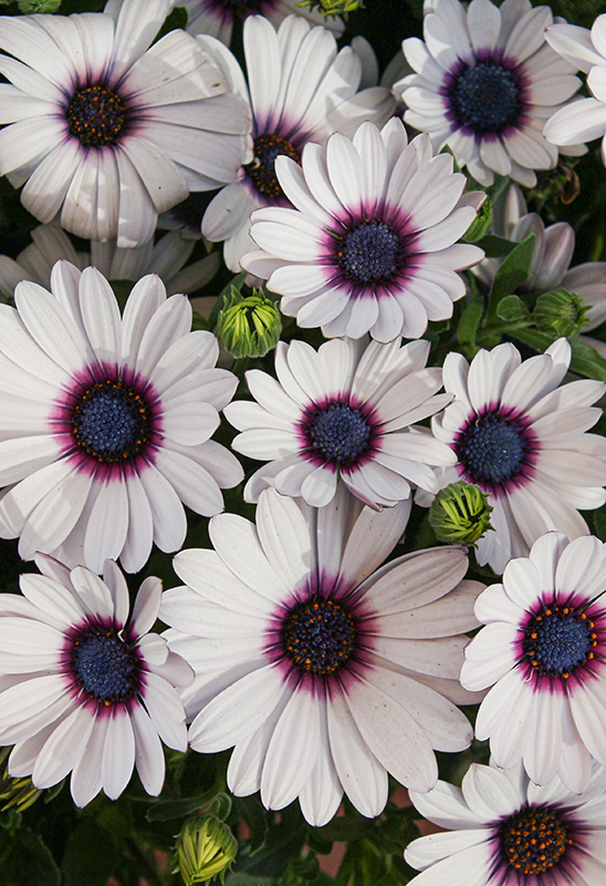 Akila® White Purple Eye African Daisy is a fine choice for the garden, but it is also a good selection for planting in outdoor containers and hanging baskets. It is often used as a 'filler' in the 'spiller-thriller-filler' container combination, providing a mass of flowers against which the thriller plants stand out. Note that when growing plants in outdoor containers and baskets, they may require more frequent waterings than they would in the yard or garden.