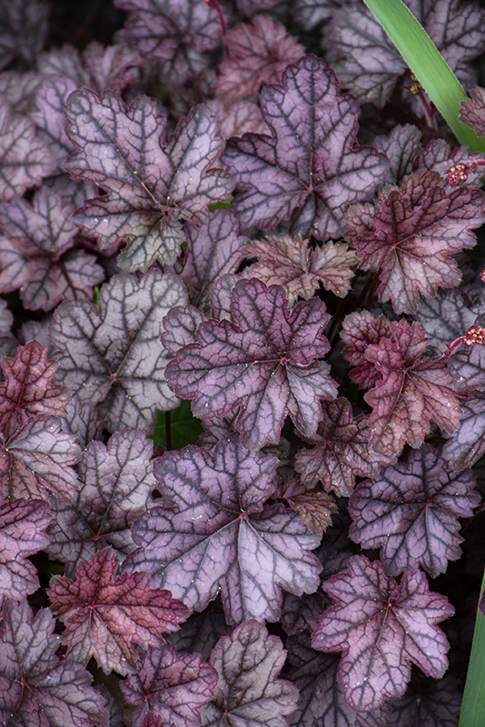 Can Can Coral Bells features dainty spikes of creamy white bell-shaped flowers rising above the foliage from late summer to early fall. Its attractive crinkled lobed leaves emerge burgundy in spring, turning silver in color with distinctive burgundy veins and tinges of grayish green the rest of the year.