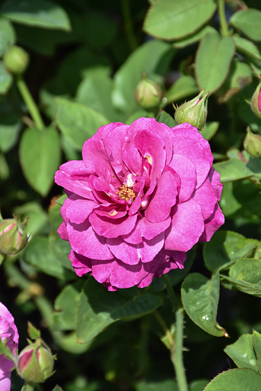 Heirloom Rose features showy fragrant fully double plum purple flowers with lavender overtones at the ends of the branches from late spring to mid summer. The flowers are excellent for cutting. It has dark green deciduous foliage. The glossy oval compound leaves do not develop any appreciable fall color. The fruits are showy red hips displayed in late fall.