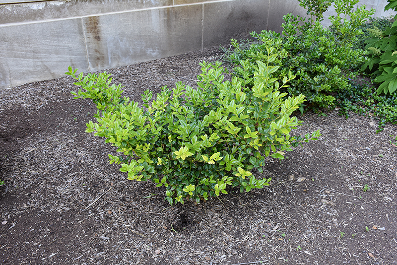 China Boy Meserve Holly has rich green evergreen foliage on a plant with a round habit of growth. The spiny oval leaves remain green throughout the winter.